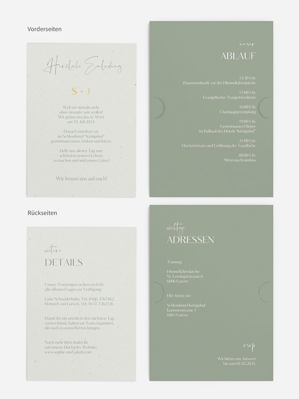 „Es war alles perfekt! Die Qualität der Karten und Umschläge ist erstklassig, das Druckbild hervorragend und der Service bestens.“ (Familie Hübner)