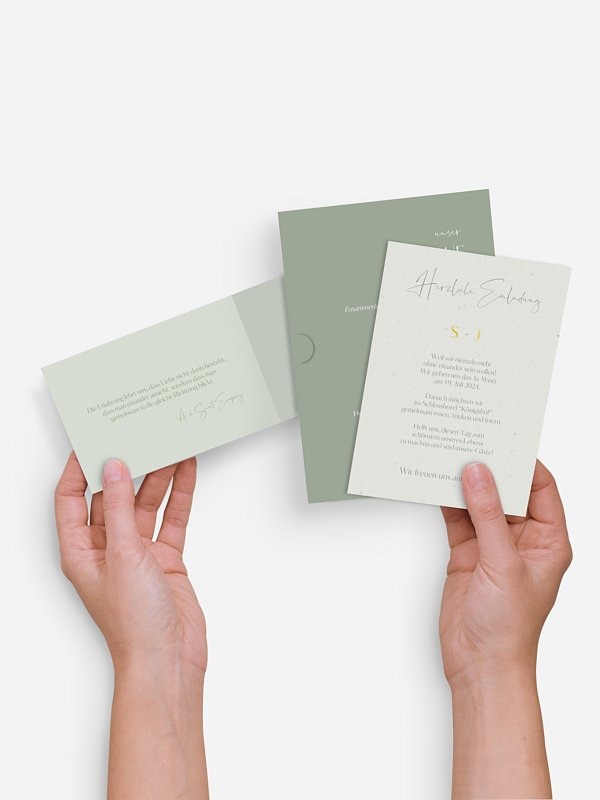 Spannende Farbtöne und glänzende Veredelungen perfekt vereint – die Hochzeitseinladung "Fall in Love".