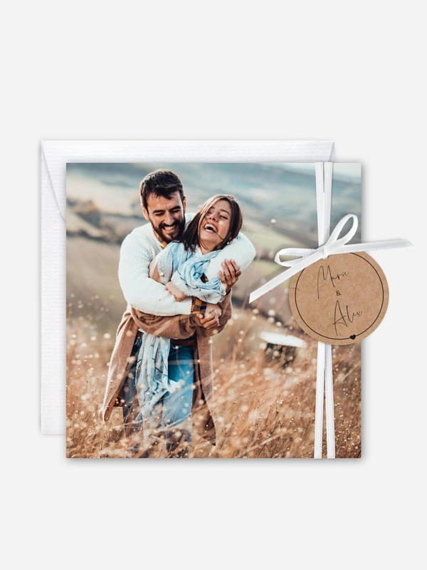 Auf dieser schönen Hochzeitseinladung "Glückspaar" steht Ihr persönliches Foto im Fokus.