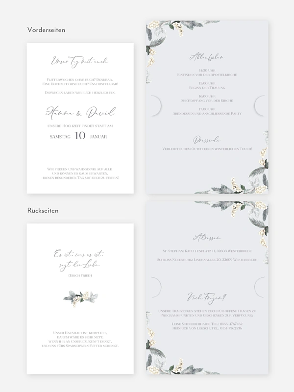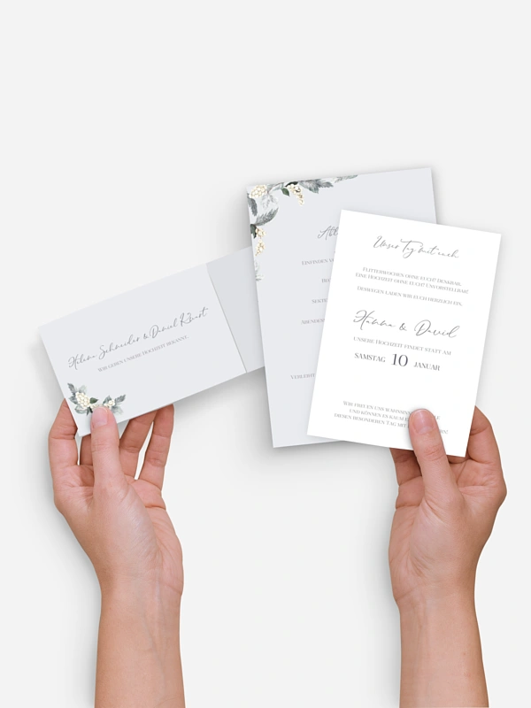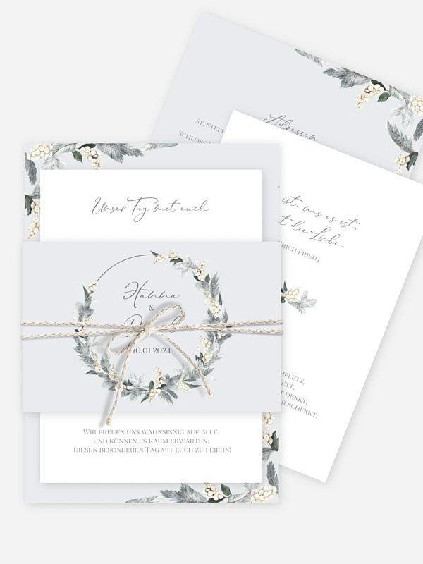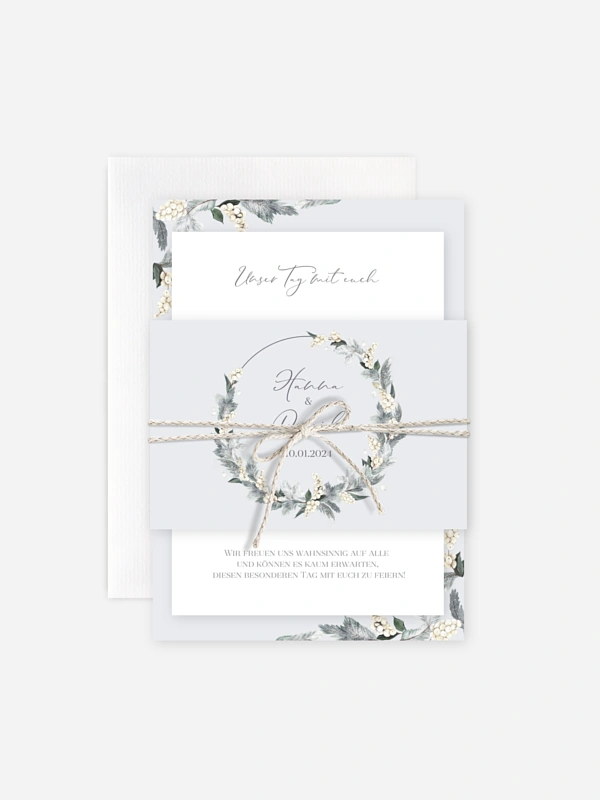 Lässt jede Winterhochzeit im schönsten Glanz erstrahlen: die Hochzeitseinladung "Iced Greenery".