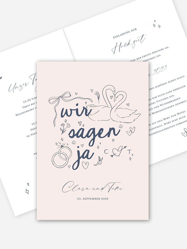 Die Hochzeitseinladung "Love Birds" feiert eure Liebe mit einem Augenzwinkern und ganz viel Herz. Verspielte Illustrationen und liebevolle Details machen sie zu einer charmanten Einladung für alle, die es romantisch, aber nicht kitschig mögen. Sie erzählt von Zweisamkeit, Vertrauen und dem großen „Ja“ im Leben. Gedruckt auf hochwertigem Papier und mit Sorgfalt gefertigt – für einen Tag voller Liebe und Leichtigkeit.