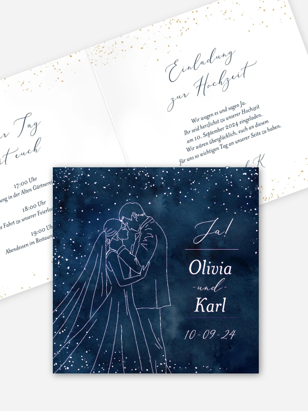 Wie in tausend und einer Nacht! Die Hochzeitseinladung "Romantic Night" verzaubert jeden Hochzeitsgast.