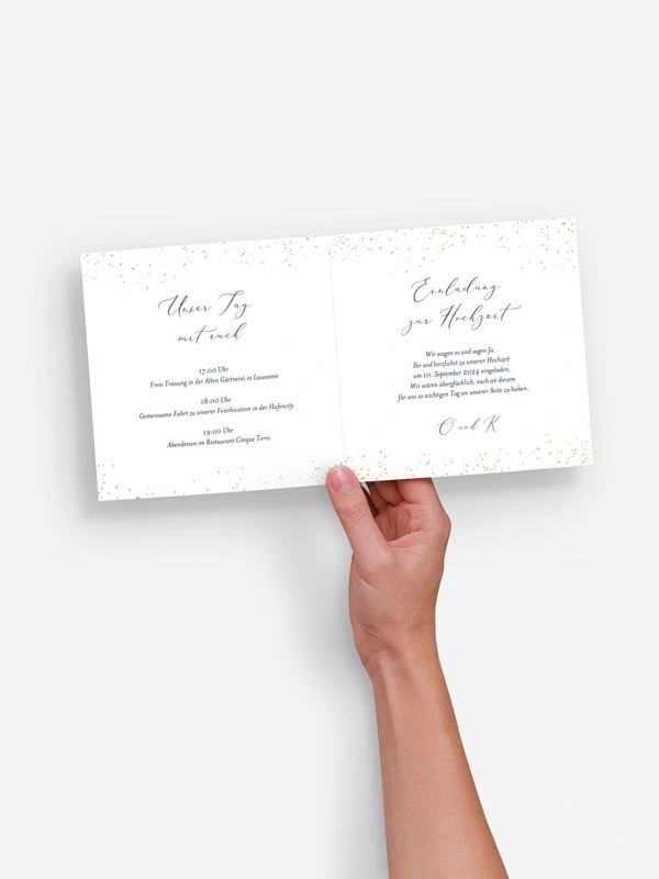 - Innenseiten: 1 Doppelseite für das Brautpaar, 2 unterschiedliche Doppelseiten für die Hochzeitsgäste, für Hochzeitspaare jeden Geschlechts geeignet.