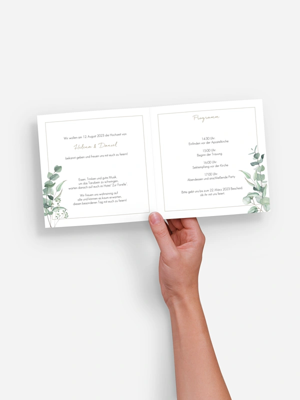„Es war alles perfekt! Die Qualität der Karten und Umschläge ist erstklassig, das Druckbild hervorragend und der Service bestens.“ (Familie Hübner)