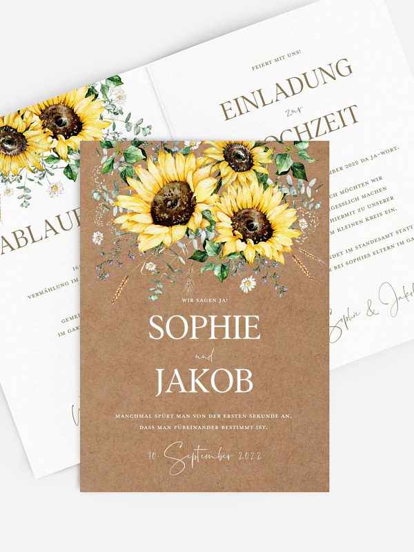 Die wunderschöne Einladung "Sunflower Dream" ist die perfekte Karte für alle Sommer- oder Herbsthochzeiten.