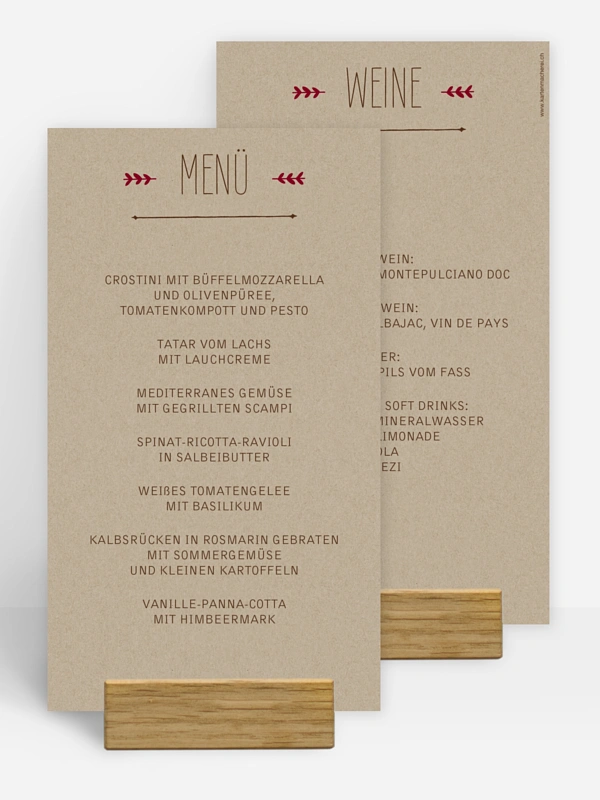 Viel Platz für Ihr Festessen bietet die charmante Menükarte "Rustic Love" im romantischen Vintage-Design.