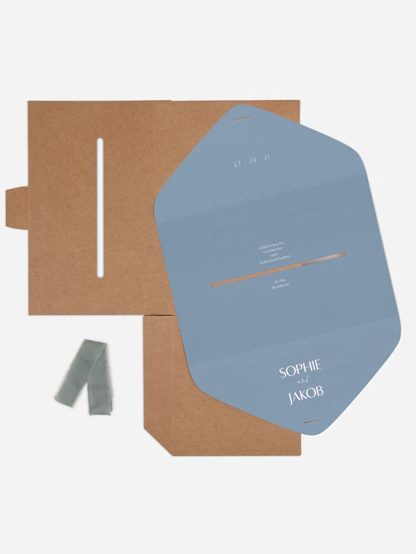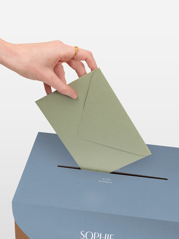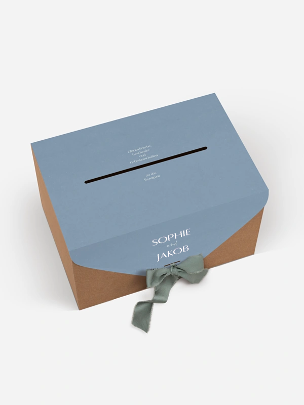 Unsere Kartenbox "Fall in Love" ist die perfekte Kombination aus Funktionalität und Eleganz. Sie sammelt sicher Glückwunschkarten, Umschläge und kleine Aufmerksamkeiten Ihrer Gäste. Die Kartenbox wird flach geliefert und lässt sich einfach zusammenbauen. Sie enthält eine individuell gestaltbare Papierhülle sowie ein farblich passendes Band. Nach dem Aufbau fügt sie sich stimmig in Ihr Papeterie-Konzept ein und wird zu einem dekorativen Blickfang mit praktischem Nutzen.
