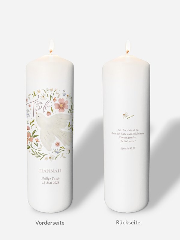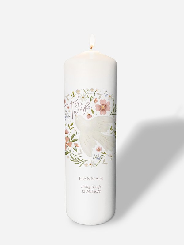 Die Taufkerze "Blossom Dove" begleitet Ihren Täufling nicht nur durch die Taufe sondern auch durch das ganze Leben.