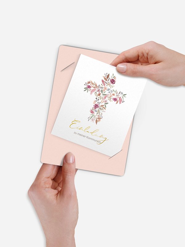 Kommunionseinladung Blütenkreuz