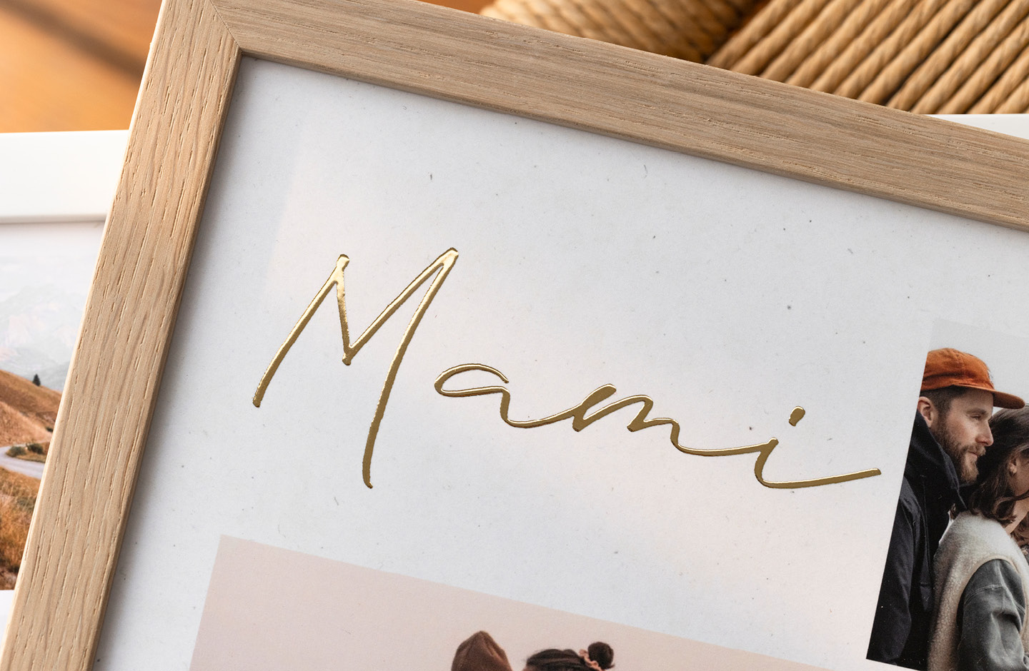 Dabei kannst du zwischen Ausführungen, Layouts und Formaten wählen. Entscheide dich für etwas, das gut zum Interieur deiner Mutter passt, suche eure schönsten Augenblicke digital heraus und lass deiner Kreativität freien Lauf! Du kannst die Schrift bei manchen Postern auch mit Goldfolie veredeln lassen, das ist ein edler Eyecatcher und macht dein Wandbild noch besonderer.