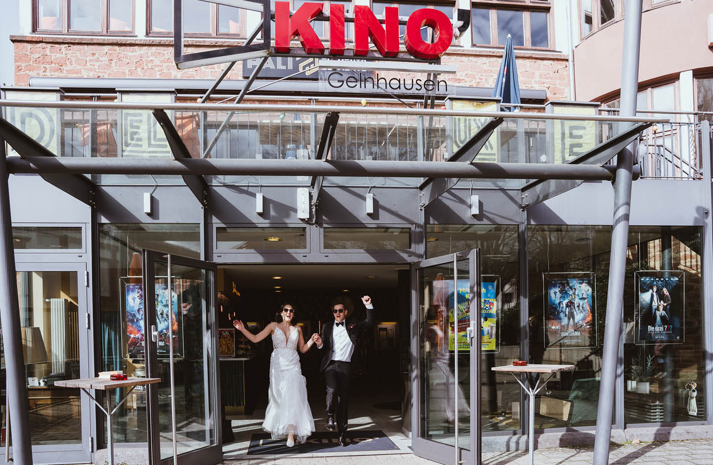 Jetzt auf Pinterest pinnenBrautpaar vor einem Kino