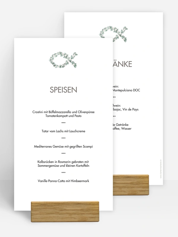 Mit der Menükarte "Eucalyptus Fish" setzen Sie das Menü für Ihre Taufe ganz besonders in Szene.
