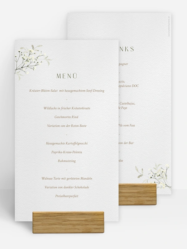 Ein echter Hingucker auf jedem Tisch: Die Menükarte "Love in Bloom" begleitet Ihre Gäste stilvoll durch das Hochzeitsmenü und verleiht Ihrer Tischdekoration das gewisse Etwas.