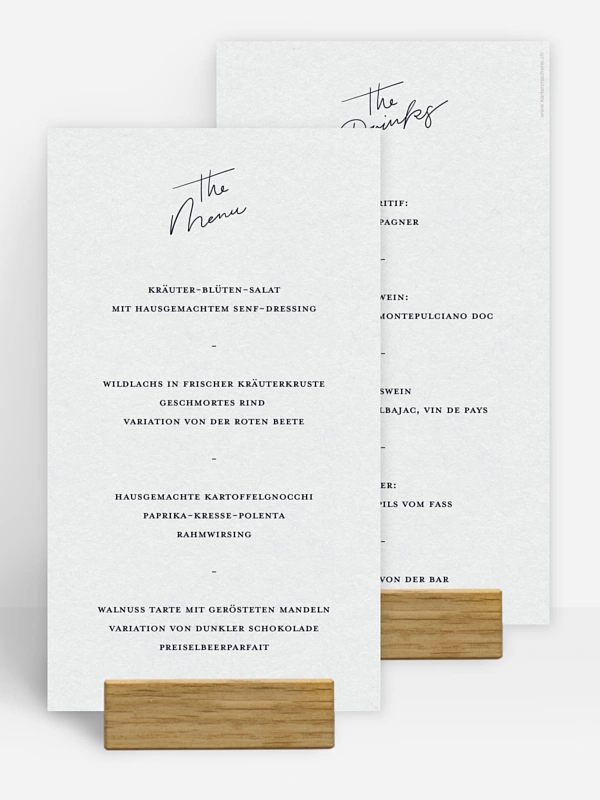 Ein echter Hingucker auf jedem Tisch: Die Menükarte "Zarte Liebe" begleitet Ihre Gäste stilvoll durch das Hochzeitsmenü und verleiht Ihrer Tischdekoration das gewisse Etwas.