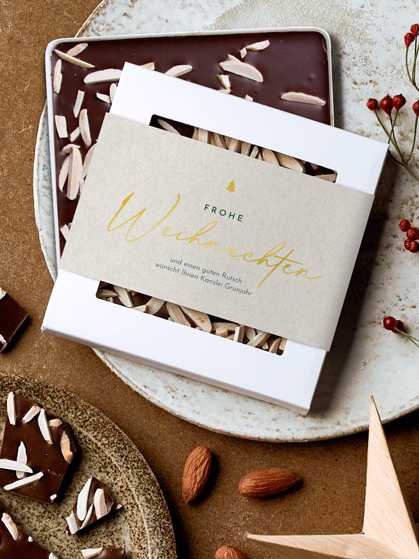 Überraschen Sie Ihre Kunden mit einem köstlichen Geschenk zur Weihnachtszeit. Die personalisierbare Schokobox "Edles Fest" mit Ihrem Logo zeigt auf stilvolle Art die Wertschätzung Ihrer Zusammenarbeit.