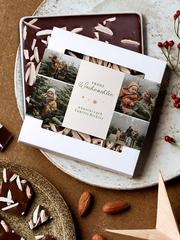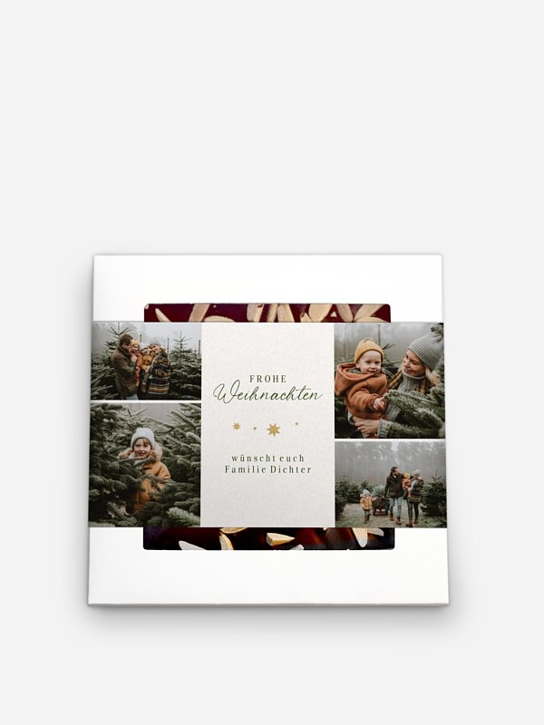 Mit der passenden Schokobox zur Ihrer Weihnachtskarte "Weihnachtliche Sterne" wird Ihre Weihnachtspost garantiert ein Hingucker.