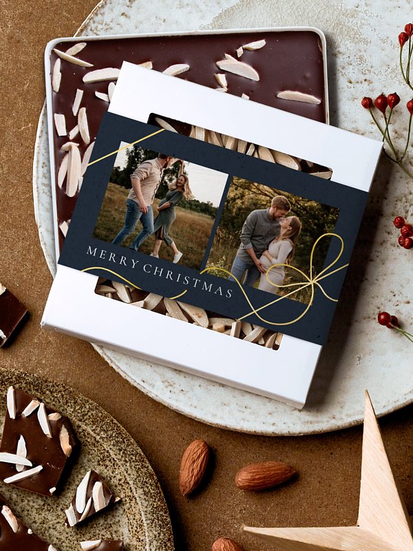 Mit der passenden Schokobox zur Ihrer Weihnachtskarte "Weihnachtsglück" wird Ihre Weihnachtspost garantiert ein Hingucker.