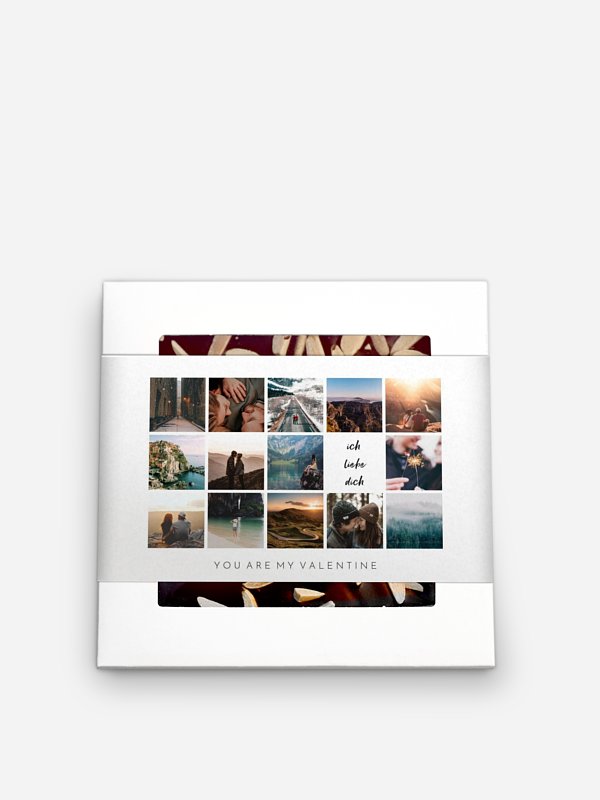 Verschenken Sie die handgeschöpfte Pralinenschokolade mit der personalisierbaren Hülle "Precious Memories" und verwöhnen Sie Ihre Liebsten zu Weihnachten. Handgeschöpfte Pralinenschokolade mit gerösteten Mandelsplittern Zutaten: Premium-Zartbitterschokolade (Kakaomasse; Zucker; Kakaobutter; Emulgator: SOJAlecithin; natürliches Vanille-Aroma), geröstete MANDELsplitter 10 % Kakao: mindestens 60 % in der Edel-Zartbitter-Schokolade Hergestellt in Deutschland Bitte kühl, dunkel und trocken lagern Gewicht: 80 g