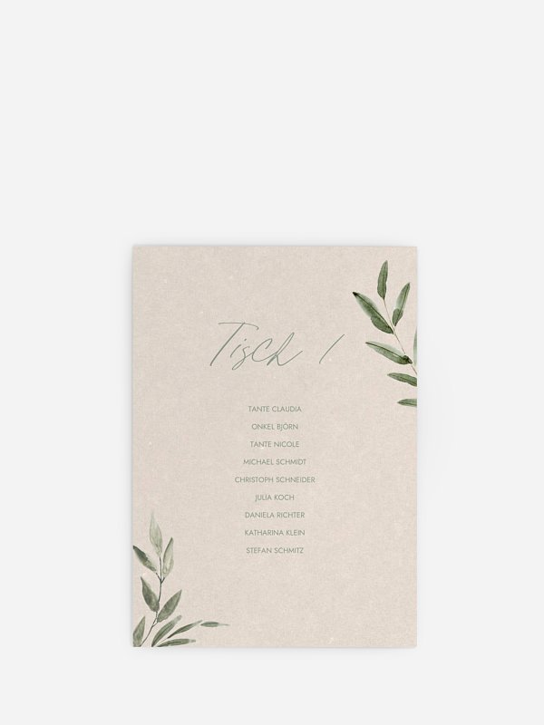 Mit dem kreativen Sitzplan "Green Dream" führen Sie Ihre Gäste ganz einfach zu ihrem Platz. Die Karten sind beidseitig identisch bedruckt und lassen sich vielseitig in Szene setzen.