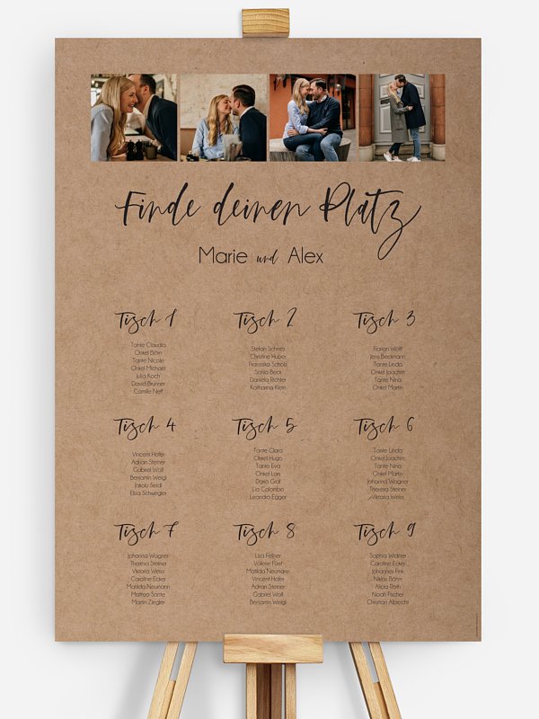 Der Sitzplan "Photo Strip" als Plakat gibt allen Gästen einen Überblick mit wem Sie an welchem Tisch Platz nehmen dürfen.