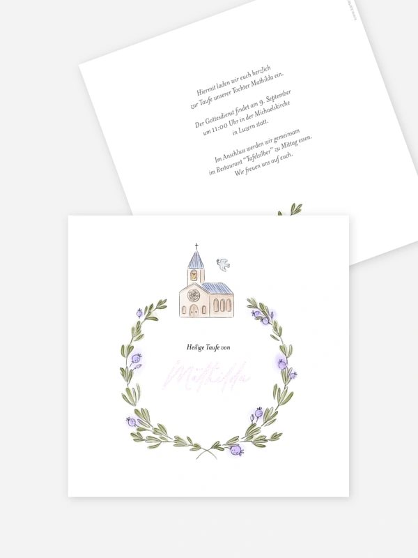 Verspielte, handgezeichnete Illustrationen umrahmen den Namen deines Schatzes auf der Taufeinladung "Segenskranz" und verleihen deiner Post eine herzliche Note. Mit diesem liebevollen Design kannst du eure Karten zur heiligen Taufe ganz persönlich gestalten und die Vorfreude auf das gemeinsame Fest mit deinen Lieblingsmenschen teilen. Unsere hochwertigen Papiere sorgen dafür, dass sich eure Einladungen genauso echt und wertvoll anfühlen, wie dieser besondere Moment. Über die einfache Konfiguration im Gestaltungs-Tool fügst du deine eigenen Worte im Handumdrehen ein. Gestalte jetzt dein Set direkt online.