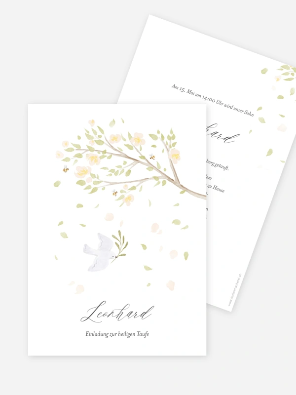 Mit der Einladung zur heiligen Taufe "Segenslicht" lädst du eure Lieblingsmenschen auf eine besonders herzliche Weise ein, diesen bedeutsamen ersten Meilenstein gemeinsam mit euch zu feiern. Das liebevolle Design mit den zarten Illustrationen fängt die friedliche Stimmung dieses besonderen Tages ein und lässt viel Raum für deine persönlichen Worte. Deine Taufkarte gestalten kannst du ganz unkompliziert in unserem Gestaltungs-Tool, damit alles genau so wird, wie ihr es euch wünscht. Wir unterstützen dich mit hochwertigen Papieren und einer schnellen Lieferung, damit du dich voller Vorfreude auf das Familienfest vorbereiten kannst.