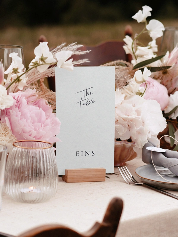Präsentieren Sie die Tischnummern stilvoll – mit der Tischnummer "Zarte Liebe" im passenden Design zu Ihrer Hochzeitspapeterie.