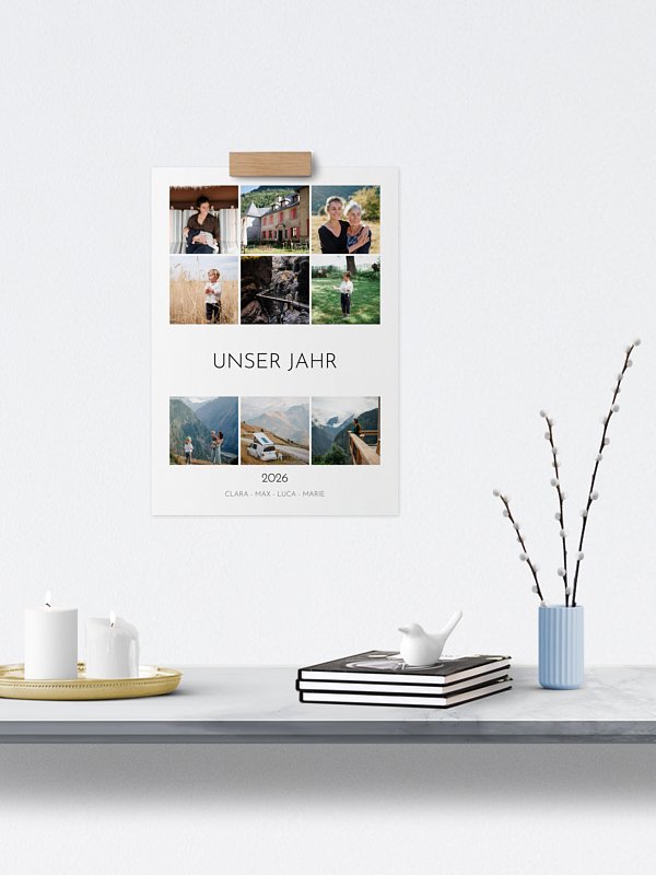 Ein Kalender bringt eure schönsten Momente Monat für Monat an die Wand: Das perfekte Geschenk für Kinder, Großeltern, Partner:in, Freund:innen, Kolleg:innen … oder einfach für dich selbst. Du speicherst deine Lieblingsmomente nur ein einziges Mal – und wählst daraus ganz leicht die schönsten Fotoprodukte für deine Liebsten. Wir schenken dir 10 %, wenn du zwei oder mehr Fotoprodukte* bestellst.
