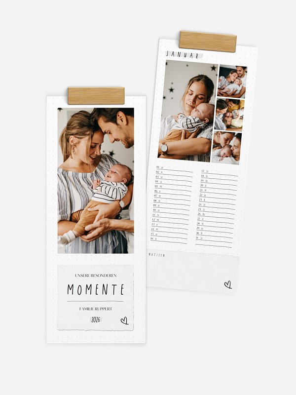 Ein Kalender bringt eure schönsten Momente Monat für Monat an die Wand: Das perfekte Geschenk für Kinder, Großeltern, Partner:in, Freund:innen, Kolleg:innen … oder einfach für dich selbst. Du speicherst deine Lieblingsmomente nur ein einziges Mal – und wählst daraus ganz leicht die schönsten Fotoprodukte für deine Liebsten. Wir schenken dir 10 %, wenn du zwei oder mehr Fotoprodukte* bestellst.