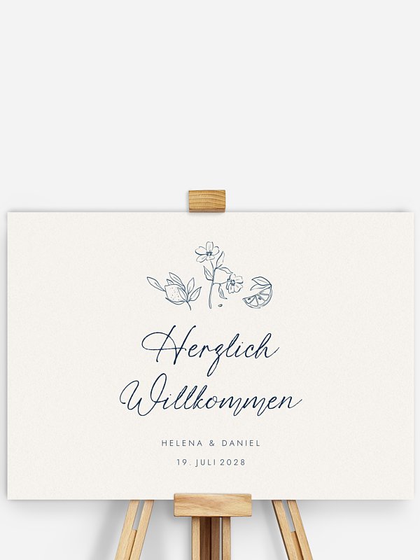 Das Willkommensschild "Mediterran" empfängt all Ihre lieben Freunde und Verwandten zu Ihrer Hochzeit.